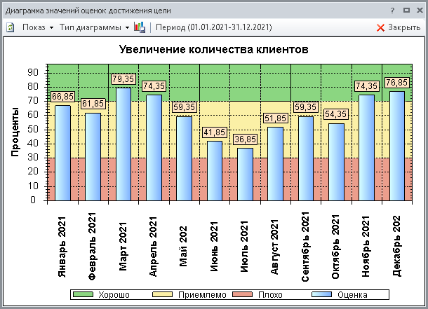 В окне Диаграмма значений оценок достижения цели (Рис 7) есть следующие способы управления отображением информации: