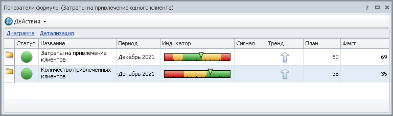 Гиперссылка Детализация значения открывает окно Показатели формулы со списком показателей, на основе которых рассчитаны значения выбранного показателя (Рис. 3).