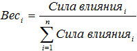 - число, соответствующее силе влияния i-того показателя, n - число различных показателей измеряющих достижение цели.