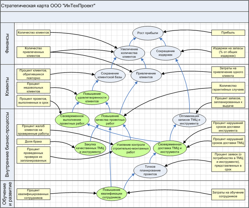 Причинно-следственная цепь - удобный инструмент для доведения ССП до нижестоящих организационных уровней. Для графического отображения взаимосвязи стратегических целей и перспектив применяют стратегическую карту.