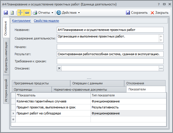 Подробнее про разработку показателей описано в главе Разработка сбалансированной системы показателей → Оценка единиц деятельности при помощи показателей.