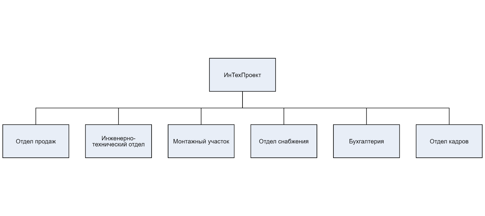 Используя связь Административное подчинение, можно построить произвольные организационные диаграммы: - организационная диаграмма только из подразделений или только из должностей; - организационная диаграмма с произвольным набором оргединиц (должности и подразделения). Это удобно при работе с крупными организационными структурами. Пример 1. Изображение организационной иерархии только до уровня руководителей подразделений без нижележащих оргединиц (Рисунок 3).