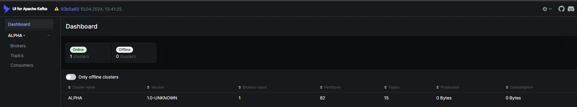 Чтобы открыть интерфейс Kafka, нужно перейти по следующему URL адресу, указав вручную IP вашего хоста: http://<IP_вашей_хост-машины>:9999