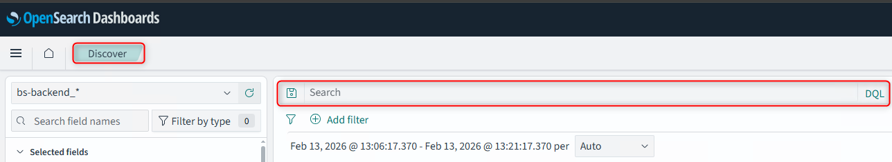 Вы можете задать собственное условие для извлечения логов. Это можно сделать в разделе Discover в поисковом поле Search (см. Рисунок 1). Условия задаются на языке DQL, подробнее о котором можно прочитать по ссылке.