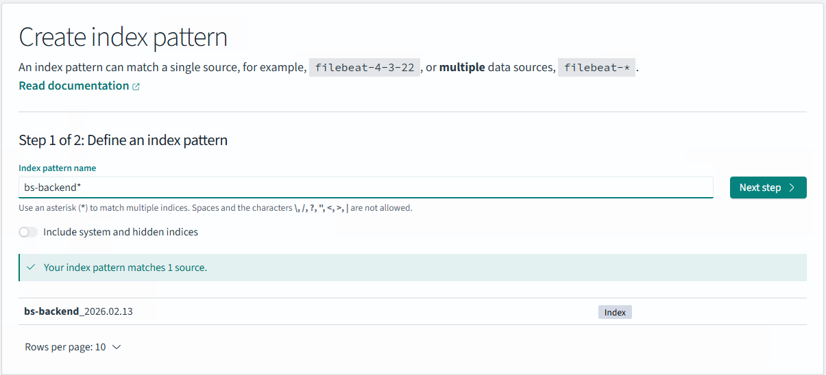 Чтобы просматривать логи сервисов единым потоком за любой выбранный период (например лог сервиса bs-backend за март 2026 года), необходимо добавить индекс. Это сделает анализ логов более удобным.