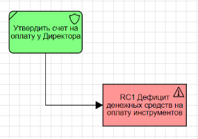 Функция EPC также может являться контрольной процедурой риска. Для отображения этого факта необходимо добавить связь от функции EPC к риску и выбрать класс связи "Контрольная процедура риска". У функции EPC в углу появится маркер щита (рис. 7).