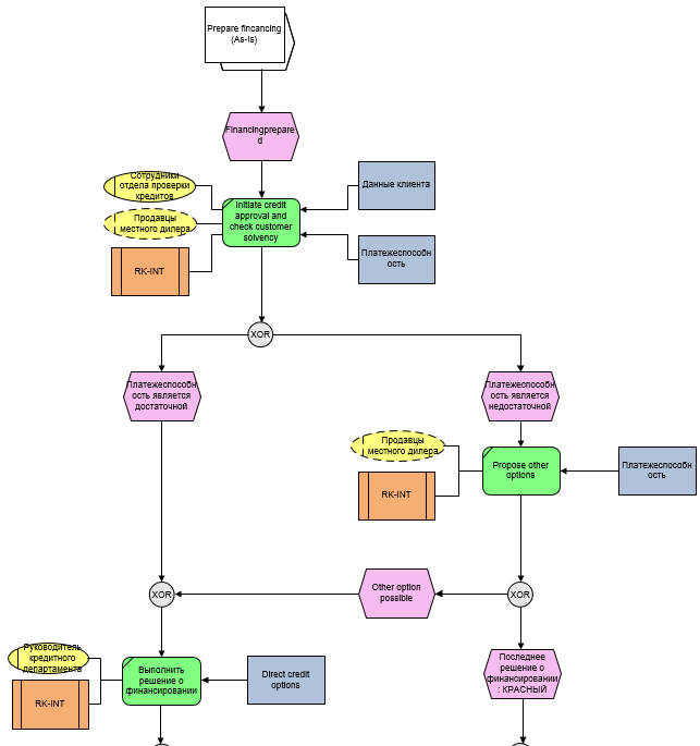 На Рис. 1 приведен пример диаграммы ЕРС, разработанной в ARIS, которая может быть импортирована в Business Studio. Результат импорта приведен на Рис. 2.