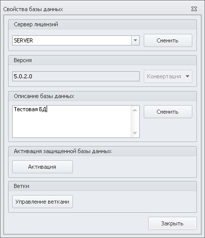 В поле Версия указывается текущая версия базы данных. При переходе на новую версию программы необходимо произвести конвертацию базы (подробнее см. Конвертация базы данных).