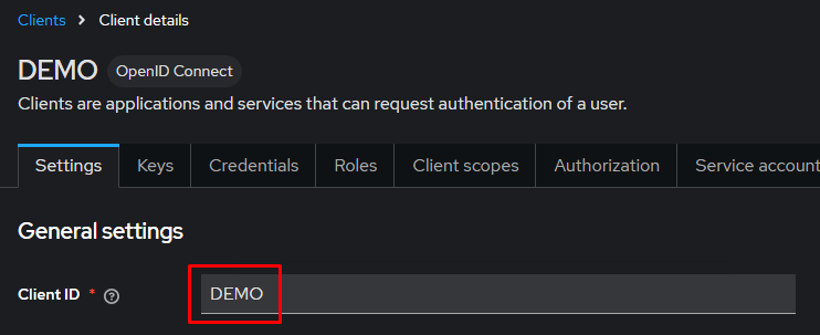 Сохраните изменения. Скопируйте значения параметров Client ID и Client Secret (вкладки Settings и Credentials) и укажите их в переменных BS_BACKEND_OPENID_CLIENT_ID и BS_BACKEND_OPENID_CLIENT_SECRET файла .env (см. Рисунок 5 и 6).