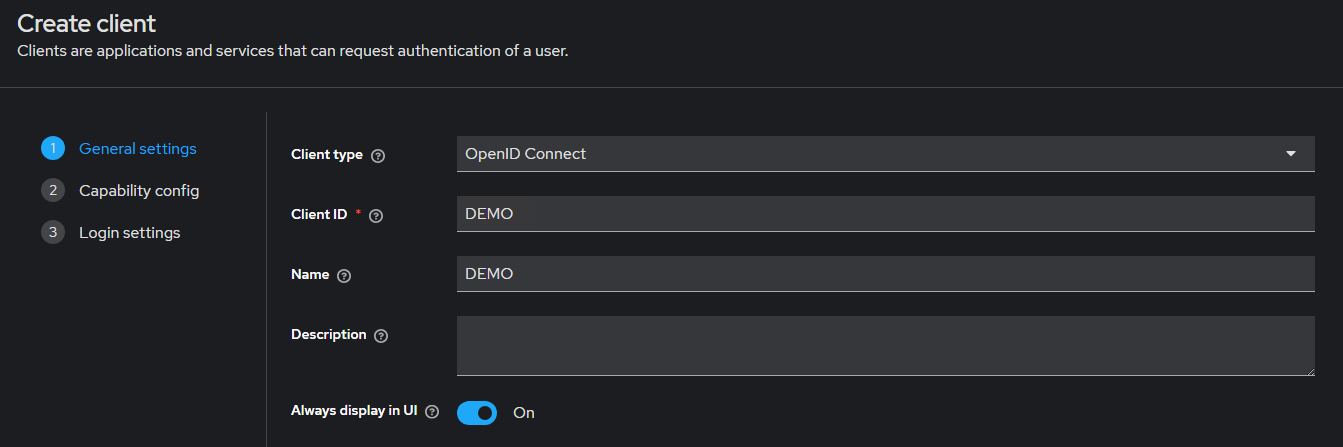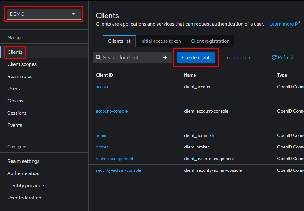 Завершив настройку вкладки «Mappers», можно приступить к созданию OpenID подключения. Для этого необходимо создать клиента, следуя рекомендациям представленным на скриншотах ниже (см. Рисунок 1-4):