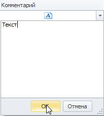 После ввода текста нажмите на кнопку Ок. Нажатие на кнопку Отмена закрывает окно без сохранения изменений.
