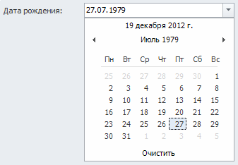 Кнопка Сегодня служит для выбора текущей системной даты. Для удаления введенного значения нажмите на кнопку Очистить.