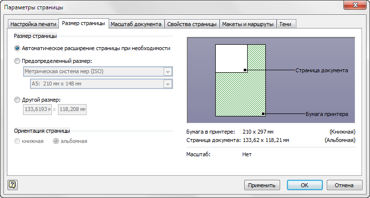 На вкладке Настройка печати (Рис. 21) указываются размеры листа бумаги и масштаб печати диаграммы. Доступный выбор зависит от типа принтера.