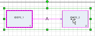 В последнем случае - при выделении стрелки точки соединения показываются более крупными (Рис. 13). Если соединение произведено к центру фигуры, то при перемещении стрелка будет перемещаться относительно ее грани (Рис. 14), что удобно, на диаграммах EPC, например.