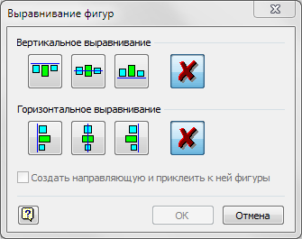 Выбранную ось выравнивания можно сохранить вместе с диаграммой и использовать в дальнейшем для перемещения группы фигур. Для этого служит флажок Создать направляющую и приклеить к ней фигуры (Создать ось и выравнивать элементы по ней), который становится активным после выбора вида выравнивания.