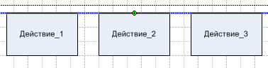 Созданная ось выравнивания будет показана на диаграмме (Рис. 27). Чтобы перетащить группу фигур, надо щелкнуть по оси и перетащить её. Связь фигур с осью необязательна. Каждый из фигур этой группы можно перемещать на диаграмме произвольно. Фигуры, оставшиеся на оси, можно перетаскивать осью.