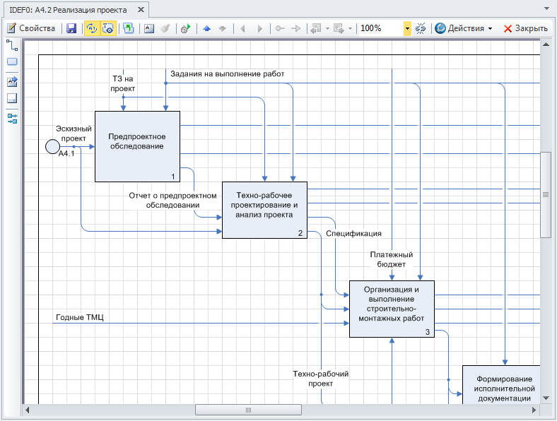 Окно диаграммы предназначено для создания и редактирования диаграмм единиц деятельности, организационных диаграмм, диаграмм стратегических карт и диаграмм Исикавы (Рис. 1).