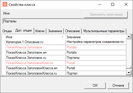 Заголовки параметров можно редактировать, если предварительно вывести соответствующие столбцы в сетку параметров класса.