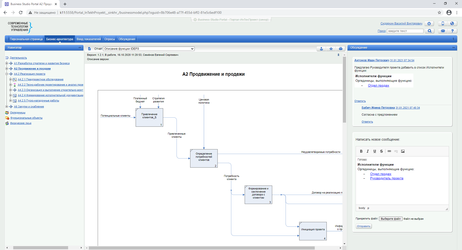 Работа с разделом Бизнес-архитектура аналогична работе с одноименным разделом HTML-публикации (см. Работа в окне HTML-публикации). Но при работе с Порталом у сотрудника появляются дополнительно следующие возможности: