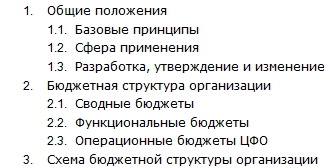 Набор статей и глубина их декомпозиции определяется особенностями финансово-хозяйственной деятельности организации, организационно-техническими возможностями по оценке и вводу фактических данных и потребностями руководства в анализе результатов.
