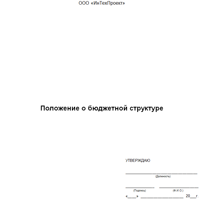 Действие данного Положения о бюджетной структуре (в дальнейшем Положения) распространяется на все подразделения ООО ”ИнТехПроект”.