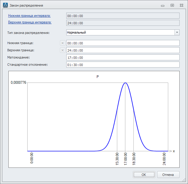 Распределение моментов времени возникновения экземпляров стартового события зададим законом распределения.