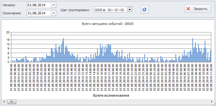 В итоге, при нажатии на гиперссылку Смоделировать моменты возникновения событий, должна получиться следующая гистограмма (Рис.11):
