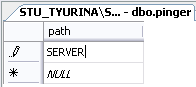 Теперь необходимо указать имя сервера лицензий для созданной базы данных. Для этого в новой базе данных необходимо открыть таблицу pinger в списке базы Таблицы с помощью пункта контекстного меню таблицы "Открыть таблицу"; и ввести в первой строке таблицы путь к компьютеру, на котором установлен сервер лицензий (Рис. 3). Путь к компьютеру может быть в виде: