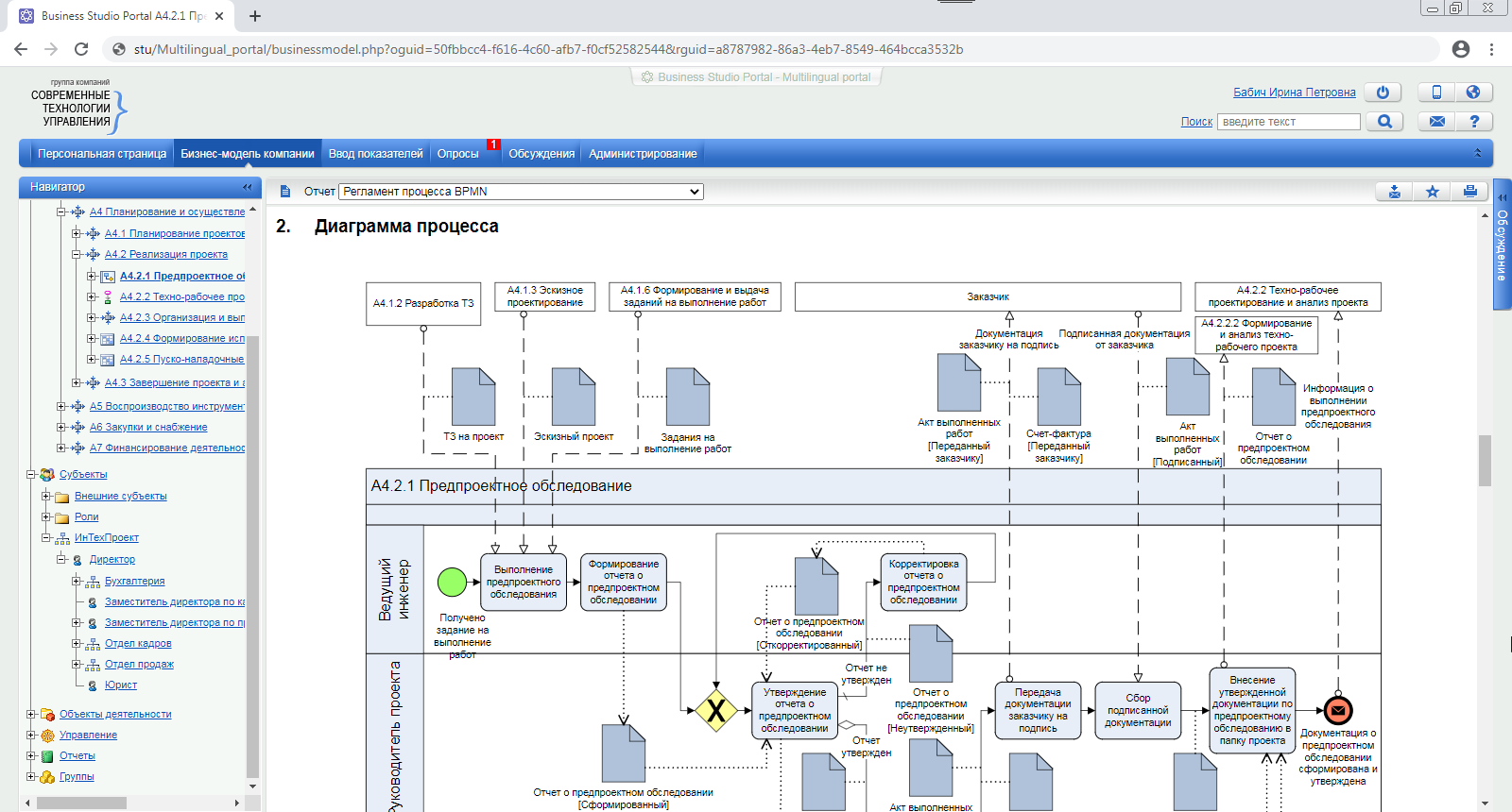 | Подготовка к сертификации и сертификация | Возможность оперативно предоставить аудитору актуальную информацию непосредственно в Business Studio, HTML-публикации или в Business Studio Portal. |
