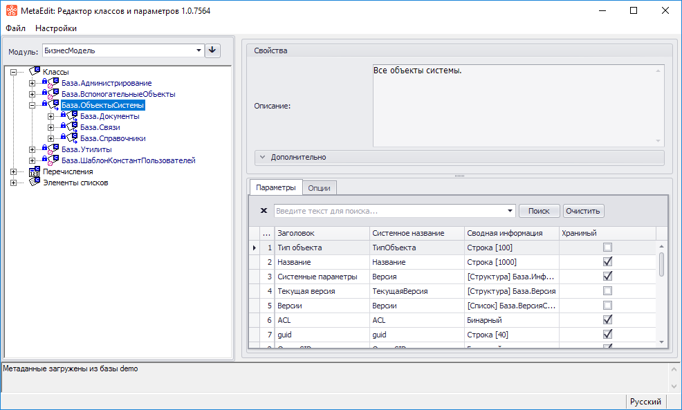 Для внесения изменений в структуру классов баз данных Business Studio используется модуль MetaEdit. С его помощью можно создавать не только собственные параметры у уже имеющихся классов, но и собственные классы-справочники c параметрами для использования в новых или существующих базах данных.