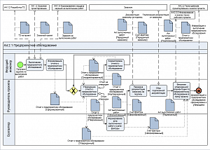 | Идентификация и описание основных и вспомогательных процессов | Графическое описание процессов в нотациях IDEF0, Процесс (Basic Flowchart), Процедура (Cross-Functional Flowchart), BPMN 2.0 и EPC (Event-Driven Process Chain). Описание свойств процессов, включая определение Владельца, Исполнителей и Участников процесса. |