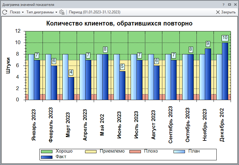 Cockpit позволяет построить графики, показывающие состояние показателей по каждому периоду на фоне заданных для периодов границ;