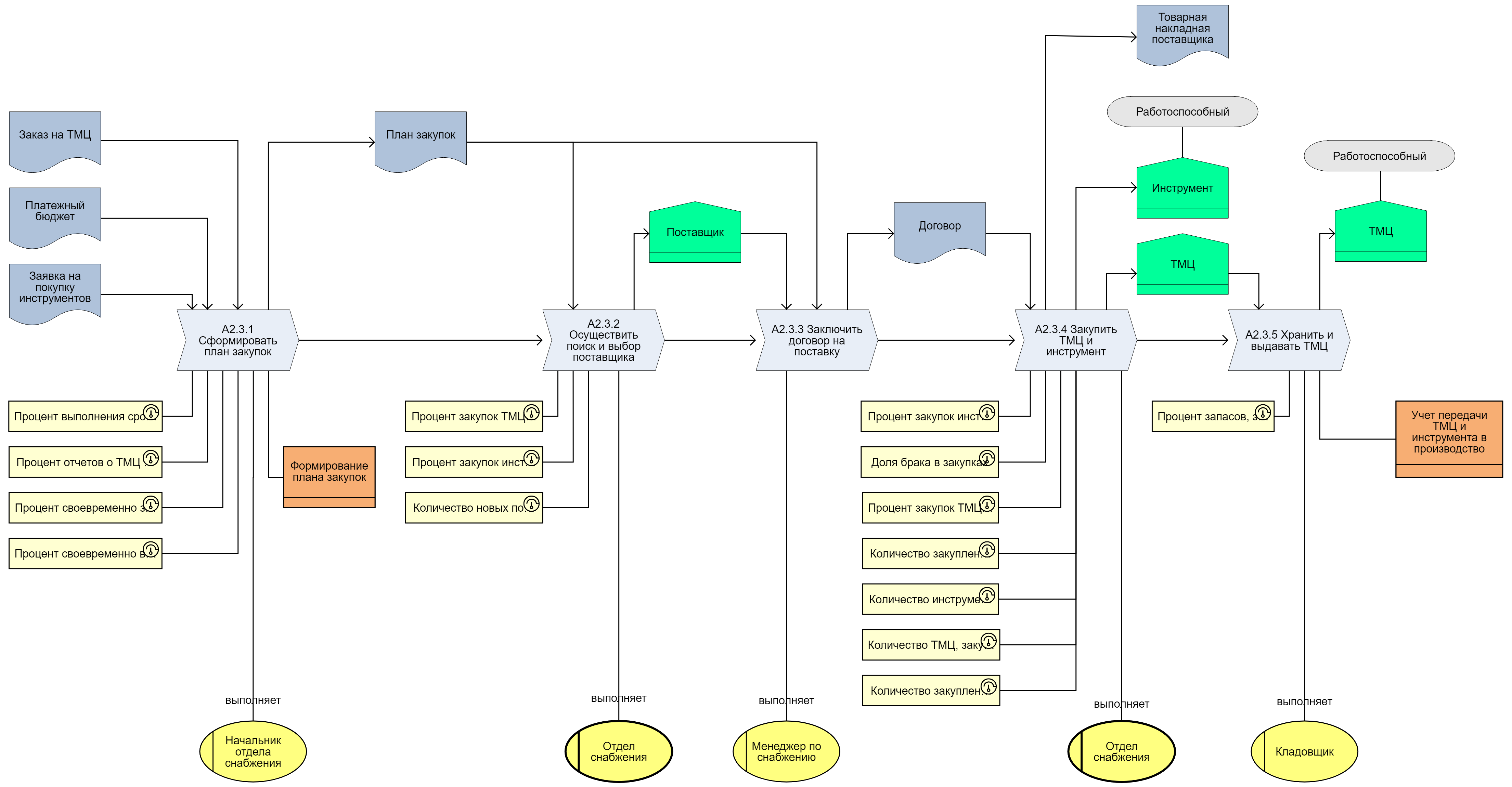 Для каждого процесса можно определить набор ключевых показателей результативности KPI. В качестве KPI можно использовать показатели из ССП или создать новые.