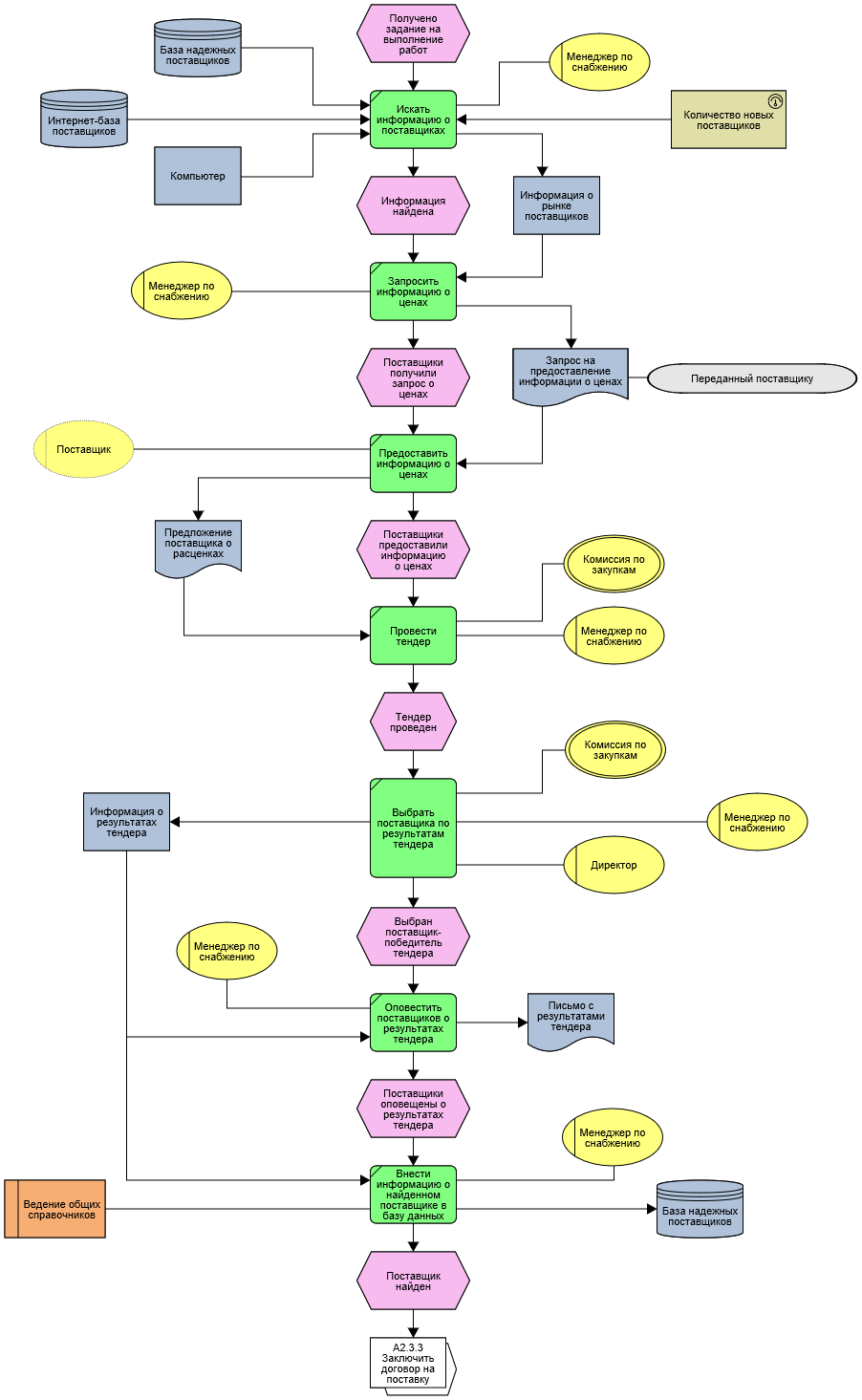 Согласно принципам процессного подхода, для процесса задаются: Владелец процесса, Исполнители процесса, Входы и Выходы, Требования к срокам выполнения и ряд других параметров. Сочетание наглядных графических нотаций и параметров процессов обеспечивает необходимую полноту описания бизнес-процессов и позволяет выпустить действительно полезную регламентирующую документацию.