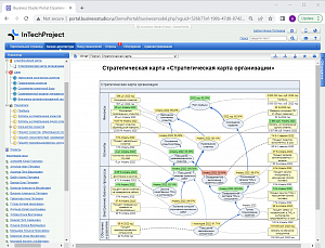 Business Studio позволяет компаниям провести формализацию стратегии, выделить и зафиксировать на стратегической карте дерево целей компании, разработать показатели достижения этих целей. Для каждого показателя задаются целевое значение и дата его достижения, а также план движения к целевому значению в разбивке по выбранному периоду измерения. За каждой целью и показателем закрепляются отвечающие за них сотрудники, а также сотрудники, ответственные за внесение значений показателей. Поддерживается каскадирование стратегической карты уровня всей компании на локальные стратегические карты подразделений.