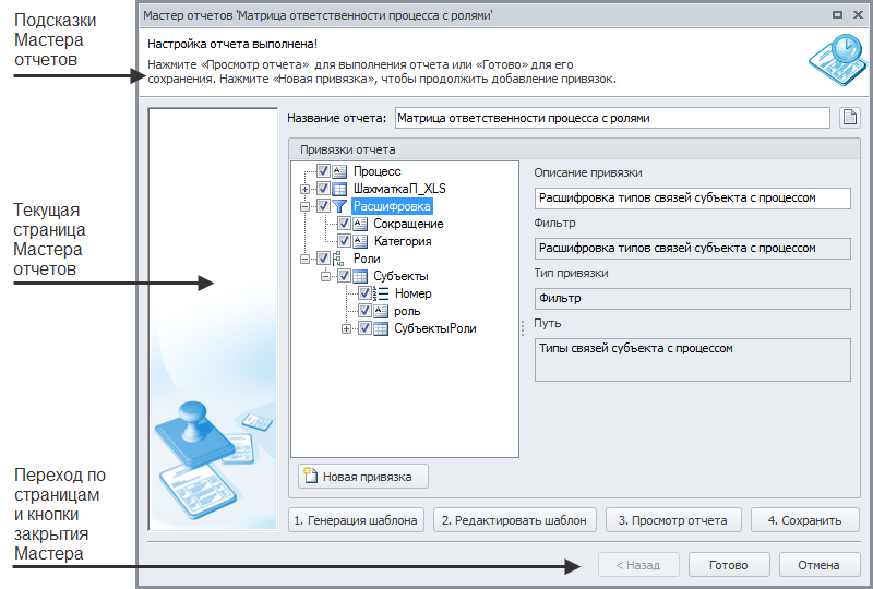 Business Studio изначально разрабатывалась для того, чтобы в простой наглядной форме представлять информацию из моделей для широких кругов заинтересованных лиц: от руководителей и сотрудников до внешних подрядчиков. Для этого Business Studio содержит мощный Мастер отчетов, позволяющий формировать отчеты с использованием всех возможностей форматирования Microsoft Word и поддерживающий сложные выборки данных.