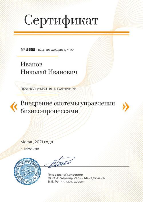 Проведение тренинга может стать стартовой точкой в дорожной карте проекта внедрения или совершенствования системы управления бизнес-процессами организации.